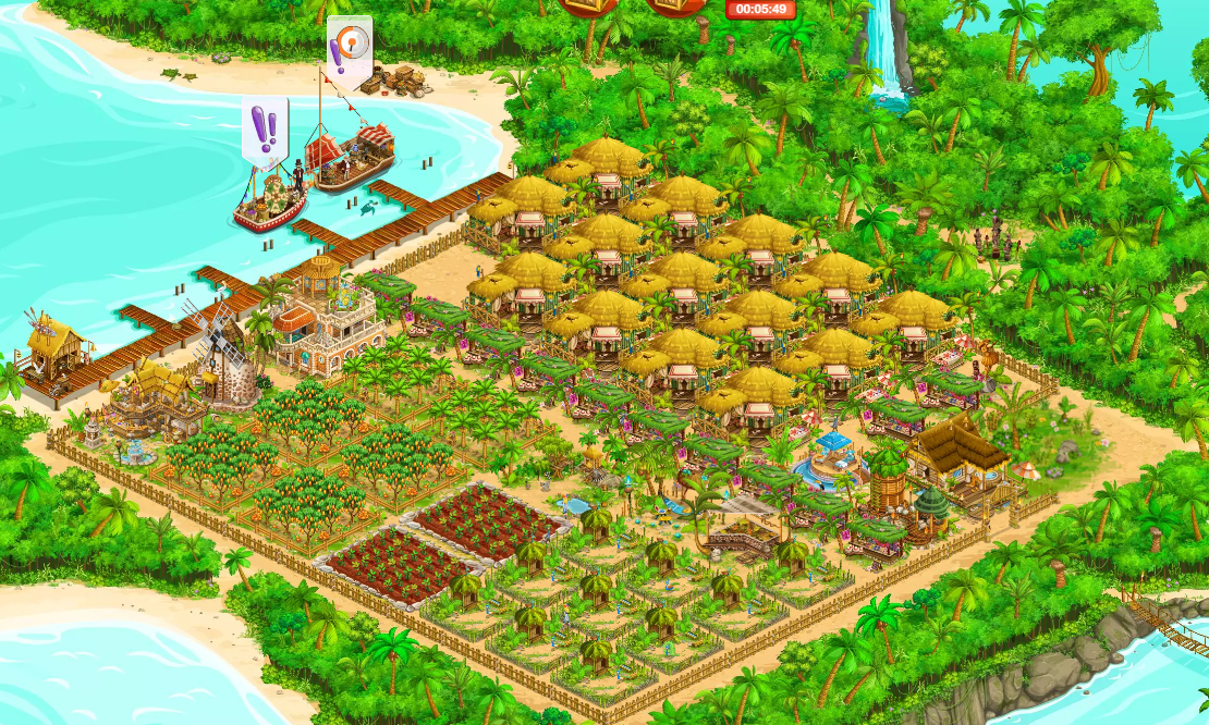 Tomorrow I will try to build some more houses and fully upgrade both fields while collecting more peanuts to prepare for producing peacock feed when the tropical mill is upgraded at the end of the day.