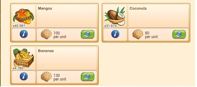 Have 13k mangoes and 6.5k coconuts . Ferti always around 100 and feed around 500 . I dunno about your server but here around 85 million shells is easily more than enough and i can do more than 100 million comfortably .