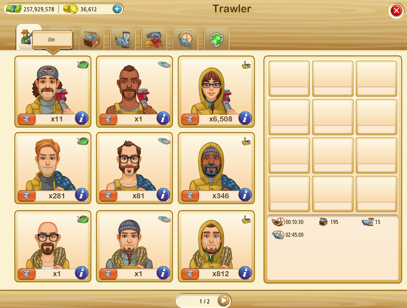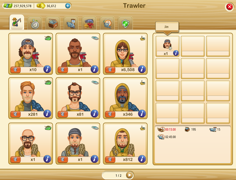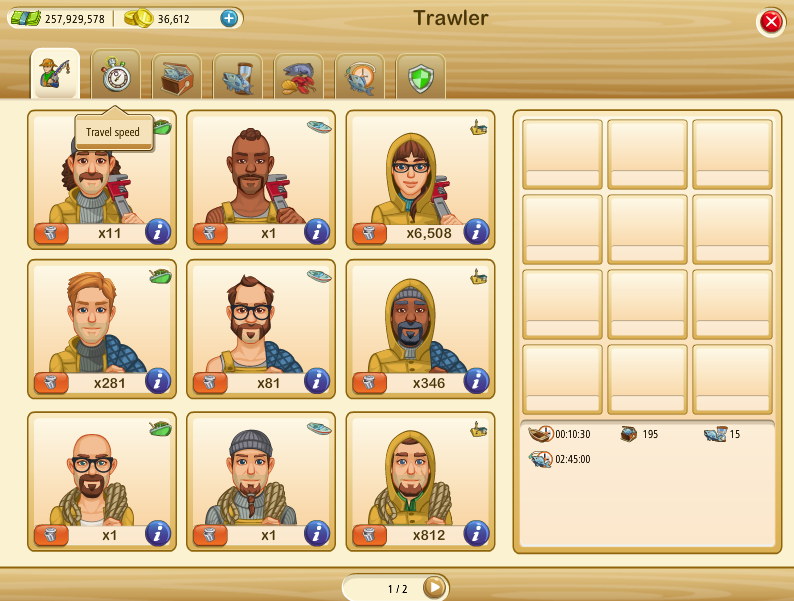 Go here and read through the equipment and crew part. You can increase all capacities of each type of boat, e.g. fish caught per hour, by selecting the right crewmember for each type of boat (hover your mouse over each it'll let you know about the info)5