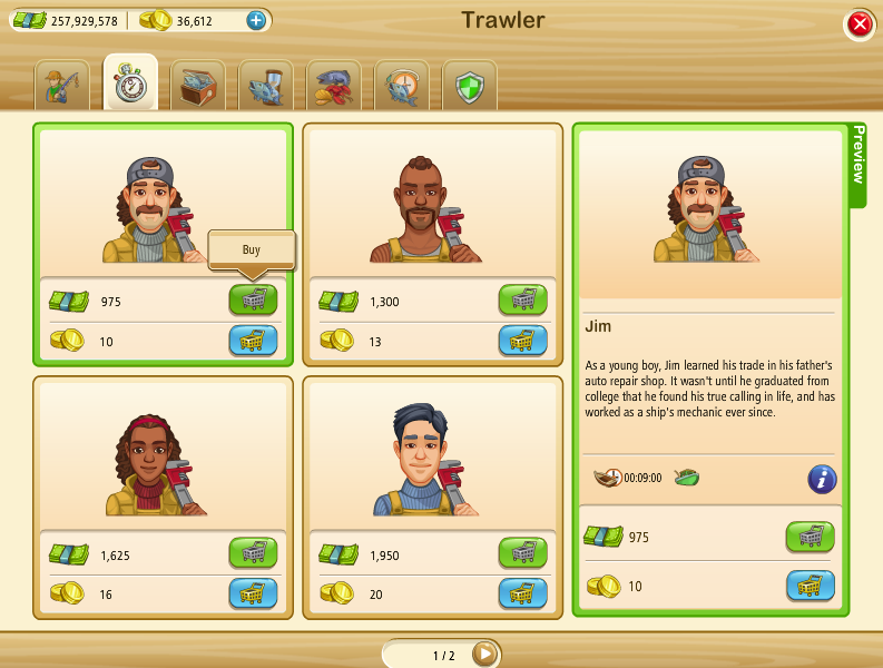 Now you will find Jim as the top left option to purchase. I would recommend purchasing him with farm dollars, as it is much easier to get farm dollars then gold.