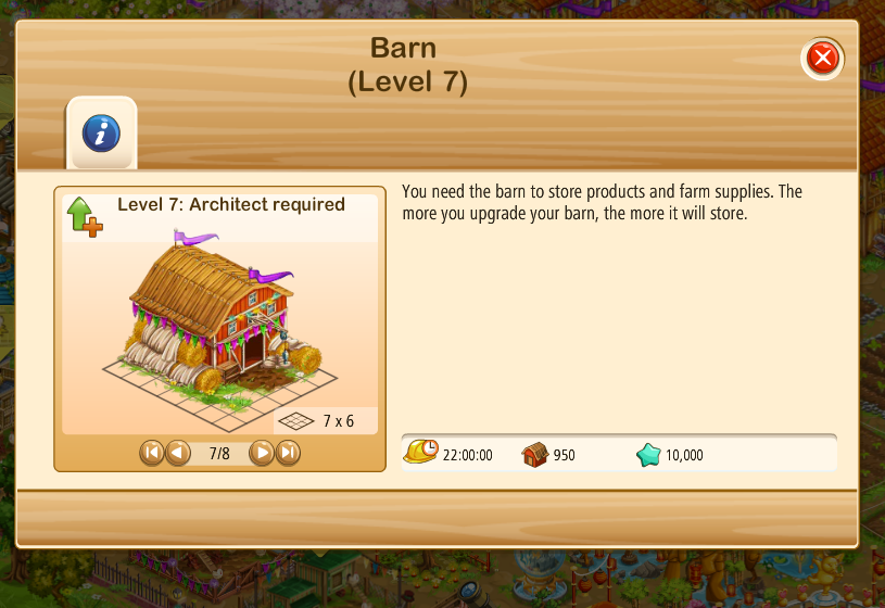 Does anyone know the hidden level requirements for architect upgrades? It only shows up when the architect is here and it is the current upgrade. Mermaid bay level 7 requires level 100, level 7 house requires level 125, level 9 coop cherry orchard requires level 125.