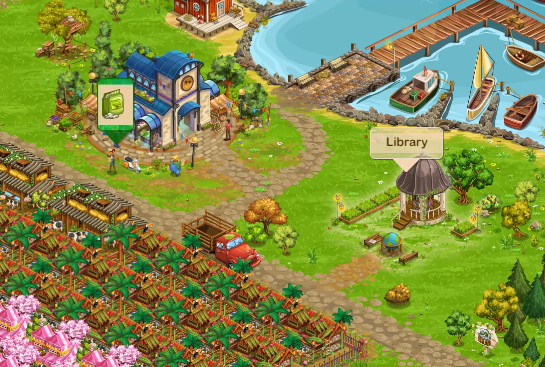 The library has a different appearance depending on how many books and levels you have purchased, but this is the location of the building: