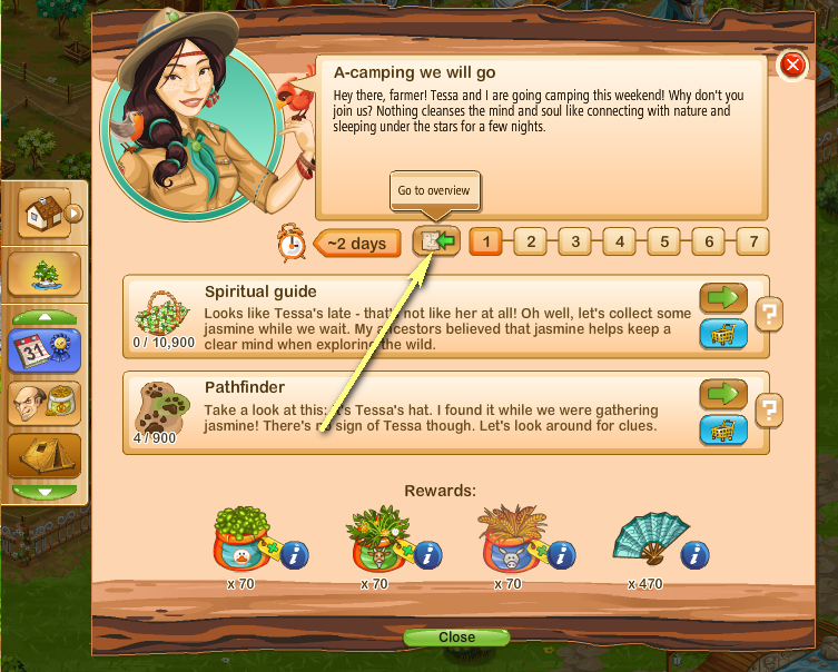 5) Scroll down until you see the Tent for the Camping Event. Click it.