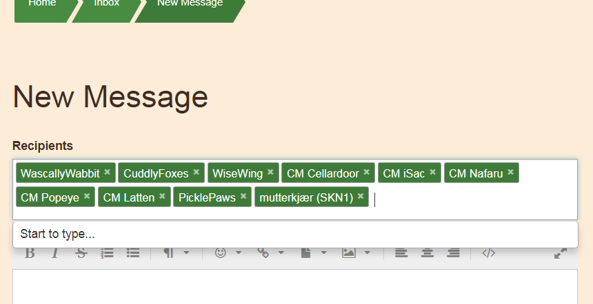 If your coop member's name does not display as an option for you to choose in the recipients box, she has most likely never visited the forum and is therefore not registered here.