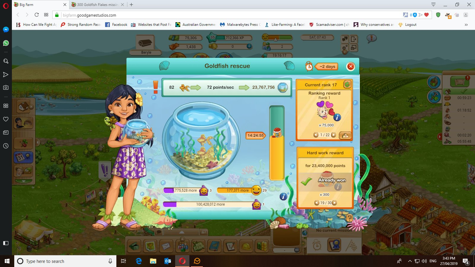 I've done that and have been doing it since it started. I managed to reach rank 17 and with 23,400,000 points. Once I reached this, my next reward (which is the one I'm asking about - Goldfish Flakes) wasn't awarded like everything else had been. No popup, NOTHING. I worked really hard on this and am very disappointed that this particular item wasn't given to me.