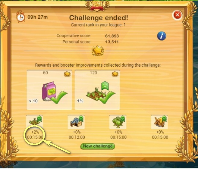 30 minute challneg reward only 2 thing 1% bonus for field and 10 pink fretlizer