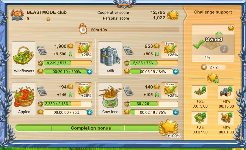 and 100% for doing all 4 mats so its 200% in total and that 200% apply to coop score only after challenge end