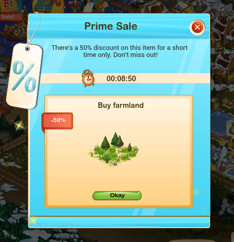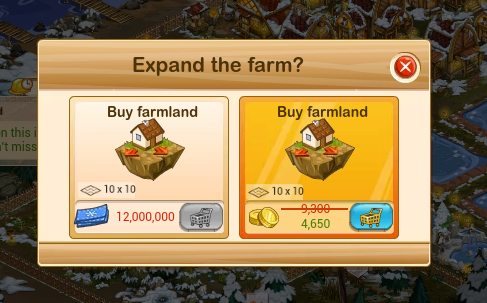 as you will find out some of the land can be and is very expensive. Example the last plot on the Gourmet farm is well over half a billion farm dollars. Even at 50% off it would be still a quarter billion farm dollars.