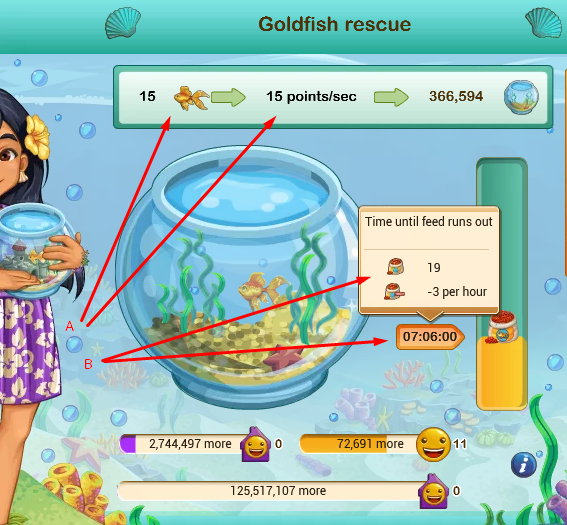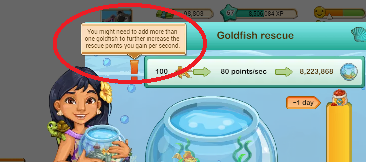 3. How to make the points/sec equal to no of goldfishes?
