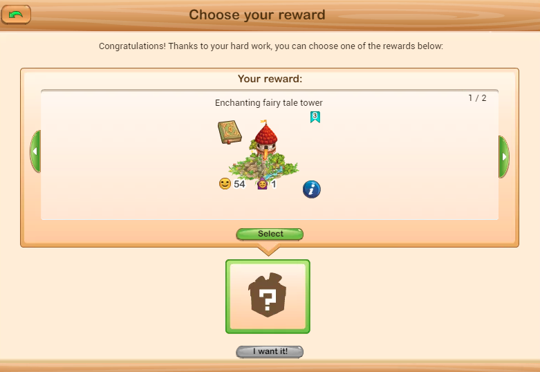 and click on the magnifying glass icon to see the rewards and make the necessary choices, if there are any.
