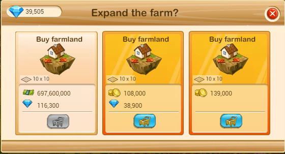 I'm not happy about this. It's really hard to collect diamonds and having to pay a large amount of farm dollars as well. So it's basically not possible for players to just buy the expansions with only farm dollars anymore. It will take an extremely long time for players to save up that amount of diamonds and they get more space by upgrading their apartment block anyway given that they are using manor housing in it. I think some players will just buy these expansions at the 50% discount with gold which is the most practical but it also takes a huge amount of time to save up that amount of gold unless we are just supposed to purchase it.