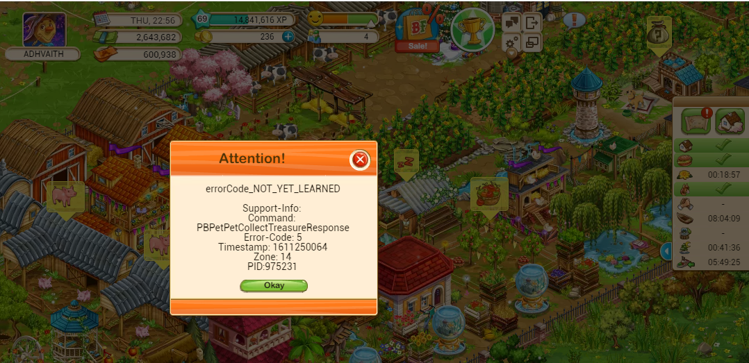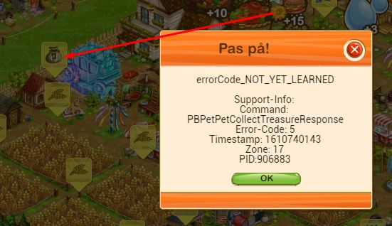 Every time I log in or change farm, and go back to the main farm, the dog house shows that I have to pick up my reward (popup thing) but it reports errors when I press it!