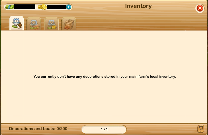 Also, we must now look at inventory in each farm, because the newer ones that are part of sets that only work on certain farms, only show up when we access inventory from the farm they work on (sort of like boats we can only see when we access inventory from the deep sea fishing area), but the total reflects all of them regardless of the specific farm they work on (meaning, I had to access inventory from the main farm, the flower farm and the fishing region in order to count everything I have in inventory)