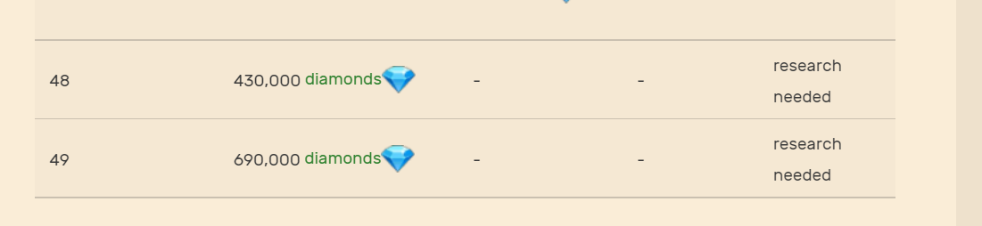 After the necessary research plot 48 on the main farm cost 430,000 diamonds and plot 49 690,000 diamonds