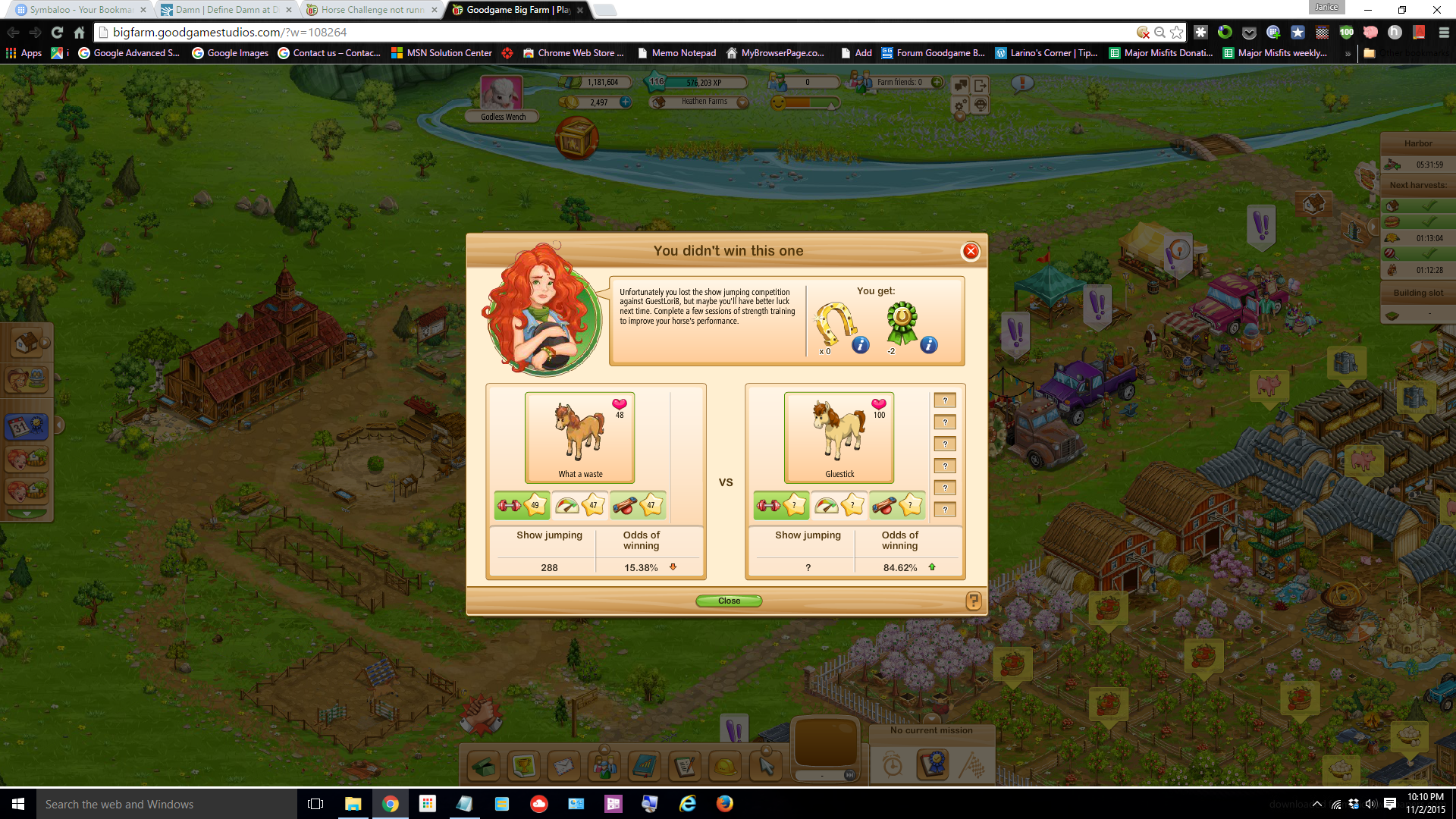 So I lost a heap of points and missed out on some gold horseshoes which I could have won.
