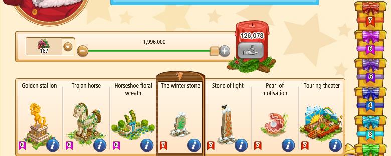 The sunflowers were 2 candle points per unit, and sunflower seed bag was worth 300 candle points. I think that super humus or seaweed humus were for best price(25 per unit I guess or more)