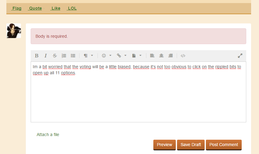Is anyone else getting this message from time to time? After having finished writing a post and clicking on "post discussion", it does not post it and instead shows this thing "body is required" ...
