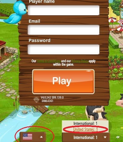 If by chance you have 2 accounts, one on each server, then be sure to go to the log in page http://bigfarm.goodgamestudios.com/ check the bottom for the flag choose the correct flag for which country then to the right of the flag select which server you wish to log into then use the little log in box top right to log into your farm