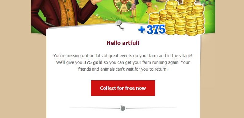 It's a simple straight-forward "collect your gift" link, which inevitably redirects me to the "something went wrong" screen.