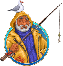 He felt invigorated by the sea spray and the smell of salt in the air. Under the tutelage of Captain Barnacle Fromel learned to operate a fishing boat and after many years has decided to set up a new charter boat business. Fromel and his companion Sammy Seagull are looking forward to selling you equipment and taking you deep sea fishing. Hope to see you aboard!