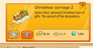 Oh, but ontopic… what a delight it was to find another Christmas carriage with happiness value of 1 in my inventory, am already looking forward to another 'compensation carriage' later this week. If GGS keeps this up, we should soon have enough carriages winding around our entire farms. Choo choo!