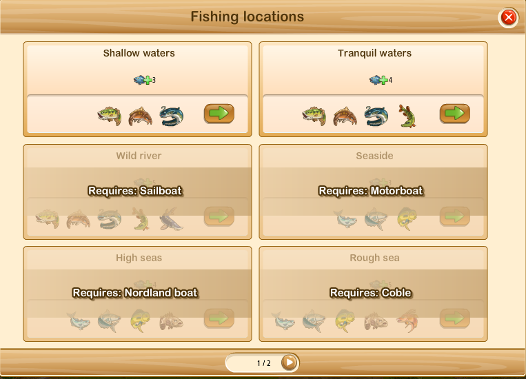 If you need a *specific* fish to complete a task (like 150 catfish or something), you can use the above chart to find out which one gives the most of that fish for the boat type you have. (like Wild River would give you 622 Catfish, so you can fish there with any boat except for the Inflatable Boat or Dinghy).