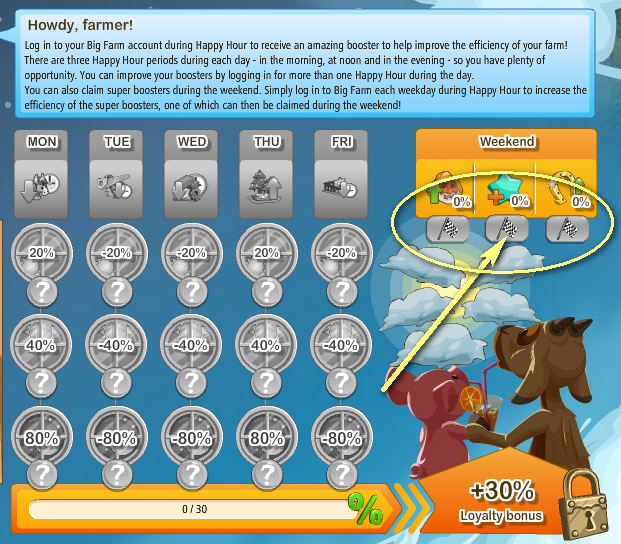 Most of the time Happy Hour doesn't recognize when I log in. I never receive all 3 boosters even when I'm on during the 3 different times.