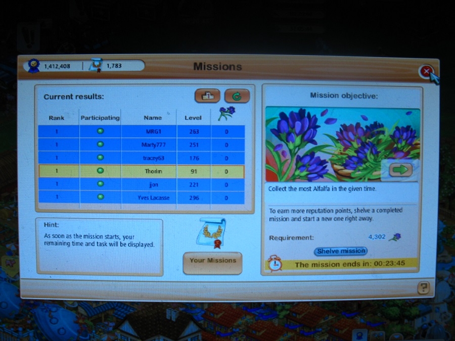 I am also one who doesn't care for the missions. I'm a little too ADD, and I wander away before the time is up, so I usually lose even when I had the product in the field or wherever. So sometimes I force myself to do a second in the day, and I especially hate it when the second mission is THE SAME one as the first!