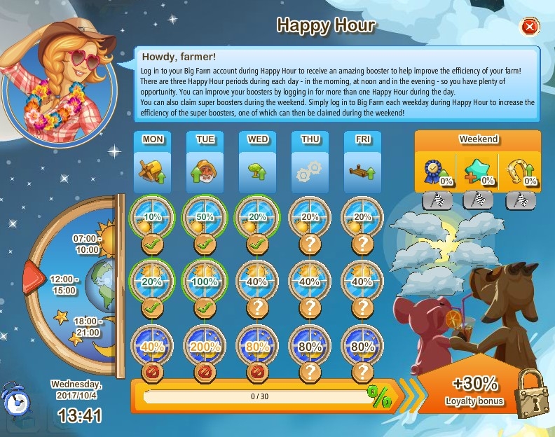 For instance, if you miss the morning one (7-10AM), but you're on for the 12-3PM one, then you'll get the 20% during the 12-3PM timeframe, then the 40% one during the 6-9PM timeframe (if you're online for it). You won't ever get the 80% (bottom one) if you miss one of the other 2. In order to get the bonus on the bottom, you have to hit all 3 timeframes.