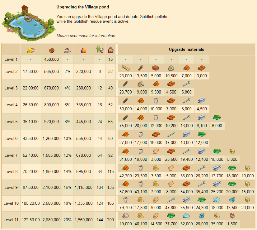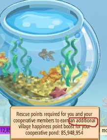 When you click on the rescue van and hover over the bottom bar for coop village happiness it says "additional" points. You get VH for upgrading the pond and additional points for the gold fish. The additional points will be added to the level points.