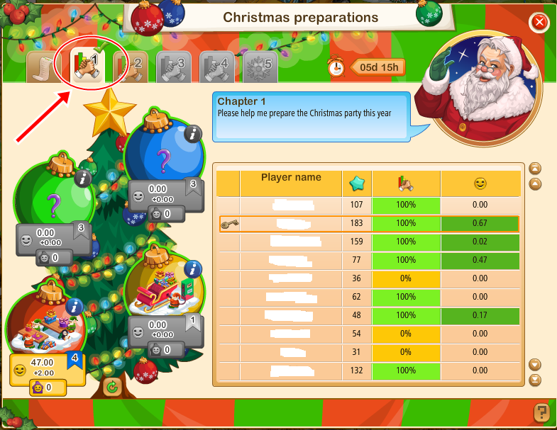 Now most people in my coop are debating whether to start harvesting at all or just throw in the towel, which is why their color is gray at the moment (they are not all offline, just haven't started harvesting items from their lists). If they stay at 0% by the time chapter 3 starts, their colors will change to yellow (for chapter 2) as well.
