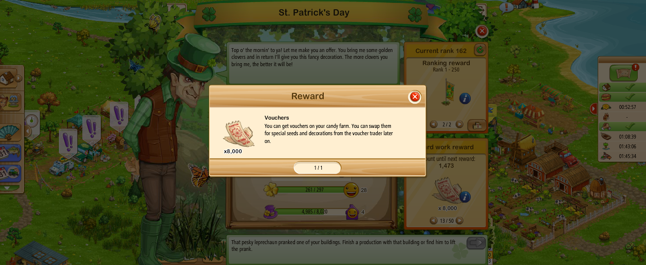 Such as, collecting the dung to make the fertilizer, to fertilize the field. Then after all that time taken to get said fertilizer I still have to wait 3 hours to get the apples. That is a sure loss when he pranks you on it. Then when you find him and he pranks you again, you have to search again, sheesh. I'm trying not to play this game much. I'm trying to just come in and collect, restart, fill orders and collect on my daily tasks to get the cash and XP that comes along with it. This game is adding to my time, lol.