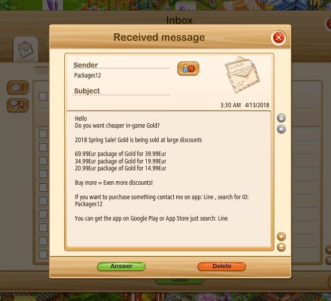 GGS will not send personal messages to players about buying gold through an app. Any gold purchases should be made through the payment shop.