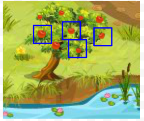 Only 4 of the apples fall when clicked. when all 4 fall, a snake wearing a hat will appear.