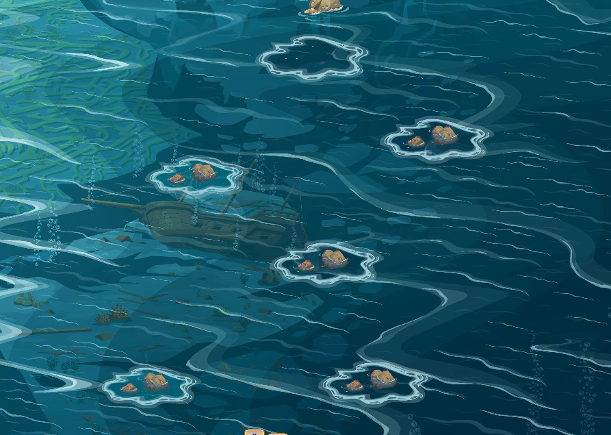 New pool spawning procedure: Pools can contain different mixtures of fish for example Lobster and Tuna, Oysters and herring. Distance(Times and risks) depend on the average value of fish. Starts out with 3 pools, can catch shrimp. When leveling up, more valuable fish types will be unlocked. Dockyard upgrades increase max pools by 1 and increase the number of each fish in pools. There will be at least 100 of each fish in a pool, up to 1000 depending on level. There will always be at least 1 pool for each type of fish unlocked; if the last clam pool disappears, the next pool will contain clams.