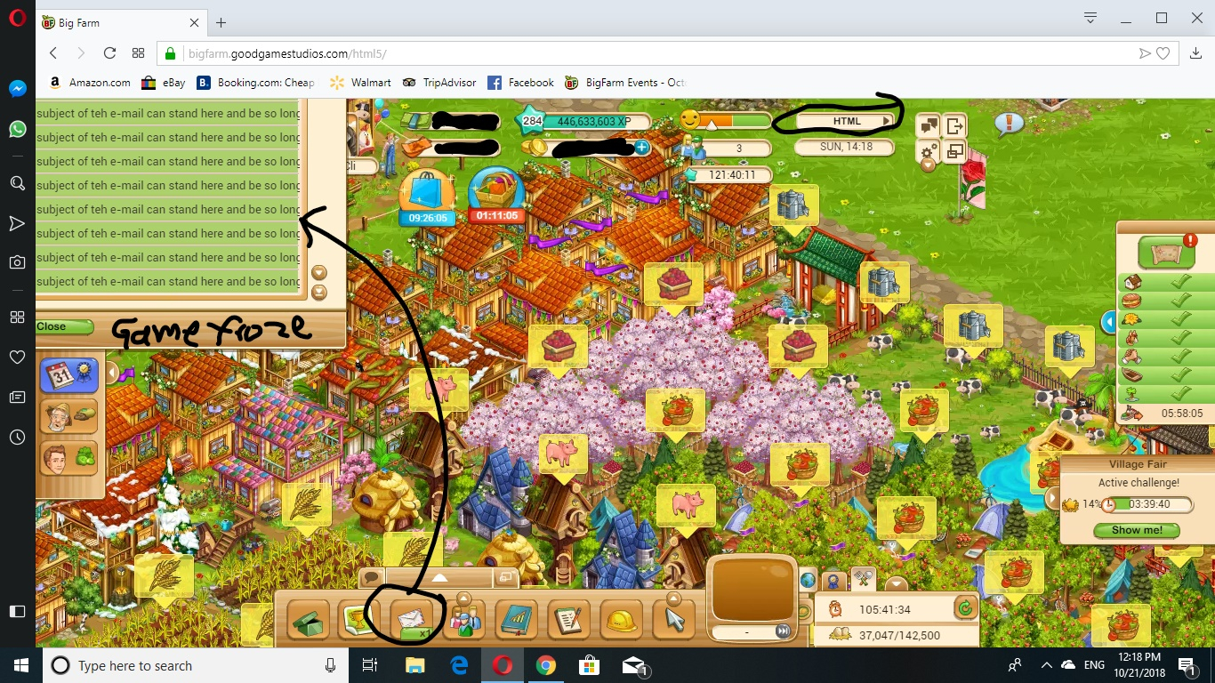 Other than the above, I love the html version so much better than Flash. I have no issues with the font size or blurriness. The farm graphics are fantastic. I don't have to reboot a dozen times while playing and especially when I visit coop members... It now takes no time to run thru and water everyone's trees. Also, I can play with the animations on all the time and use the high quality resolution which I could not do in flash.My computer: