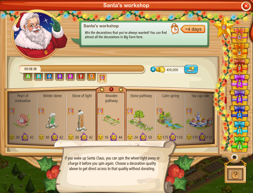 I am so not happy with this Santa workshop, I ended up paying out in gold 3 times cause it would not spin at all unless I did, only to get a item in the end that I already have and did not want, I am so not liking this one nope.
