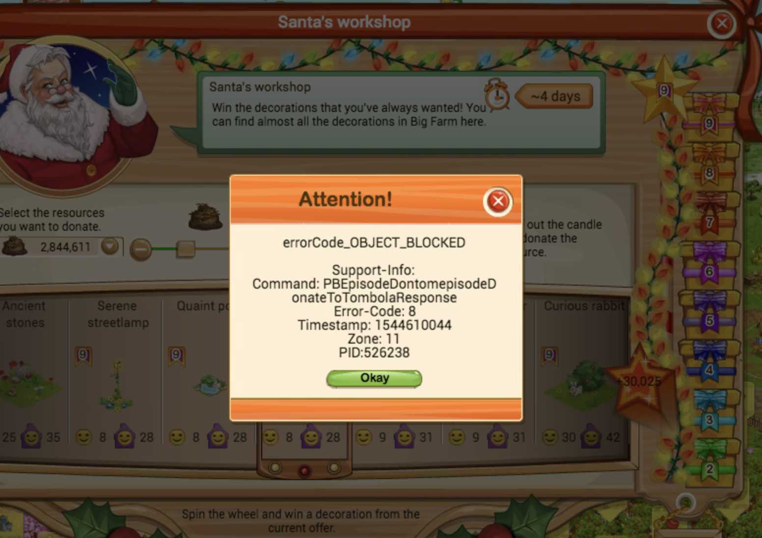 • @TheJ.mulcahy (GB1) You still have us a bit baffled about the sequence of events, which led to you losing 30K gold, but I notice the timestamps on your posts & you appear to have spun the wheel 9 hours earlier, in which case, Santa would still have been asleep, did you wake him up from a screen that looked a bit like this one, except the progress bar was more filled in the timer a lot further along, possibly with 30,000 showing in the box where that one shows 439,000?