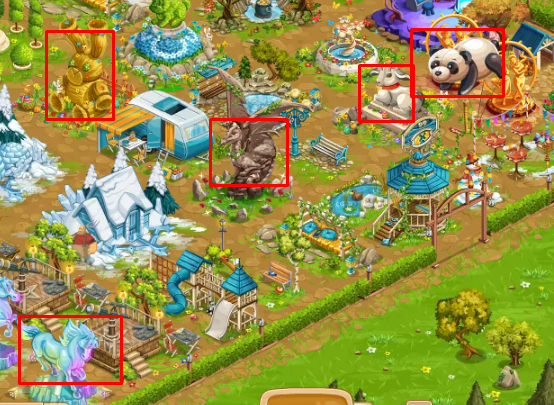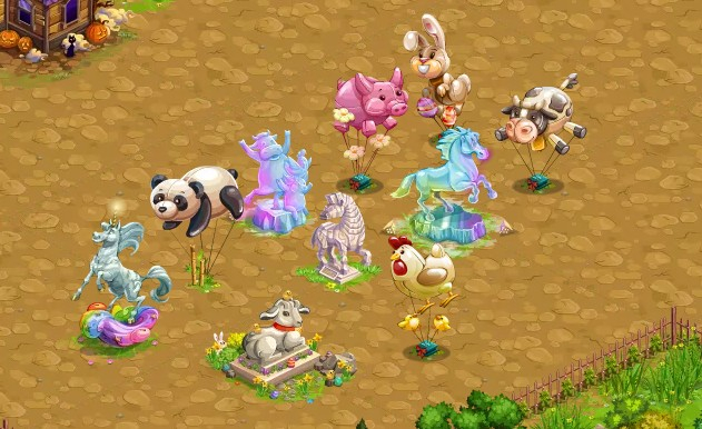 5 decos each with a different animal on it. - All 5 decos must be on the same farm