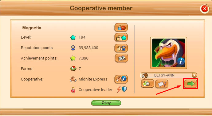 A window will pop up showing that players information... click the visit farm button located on the bottom right...