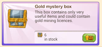 This is the weakest gold mystery box. It gives 425 gold on average (10% chance for 1 gold mining license and 10% chance for 3 goldflower seeds).