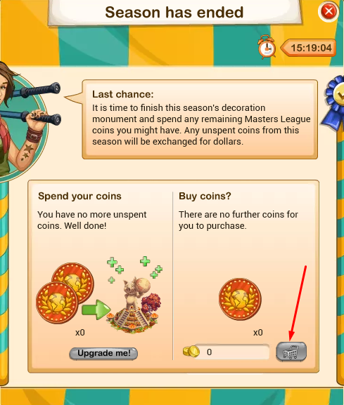 If you click the Buy coins in Season has Ended pop up ... you get Autumn coins. When you then go to your Autumn monument Upgrade page, you will see the autumn coins ready to be used for buying an upgrade.