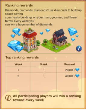 But be assured, the rewards for the first and only week are still at 40.000 diamonds!