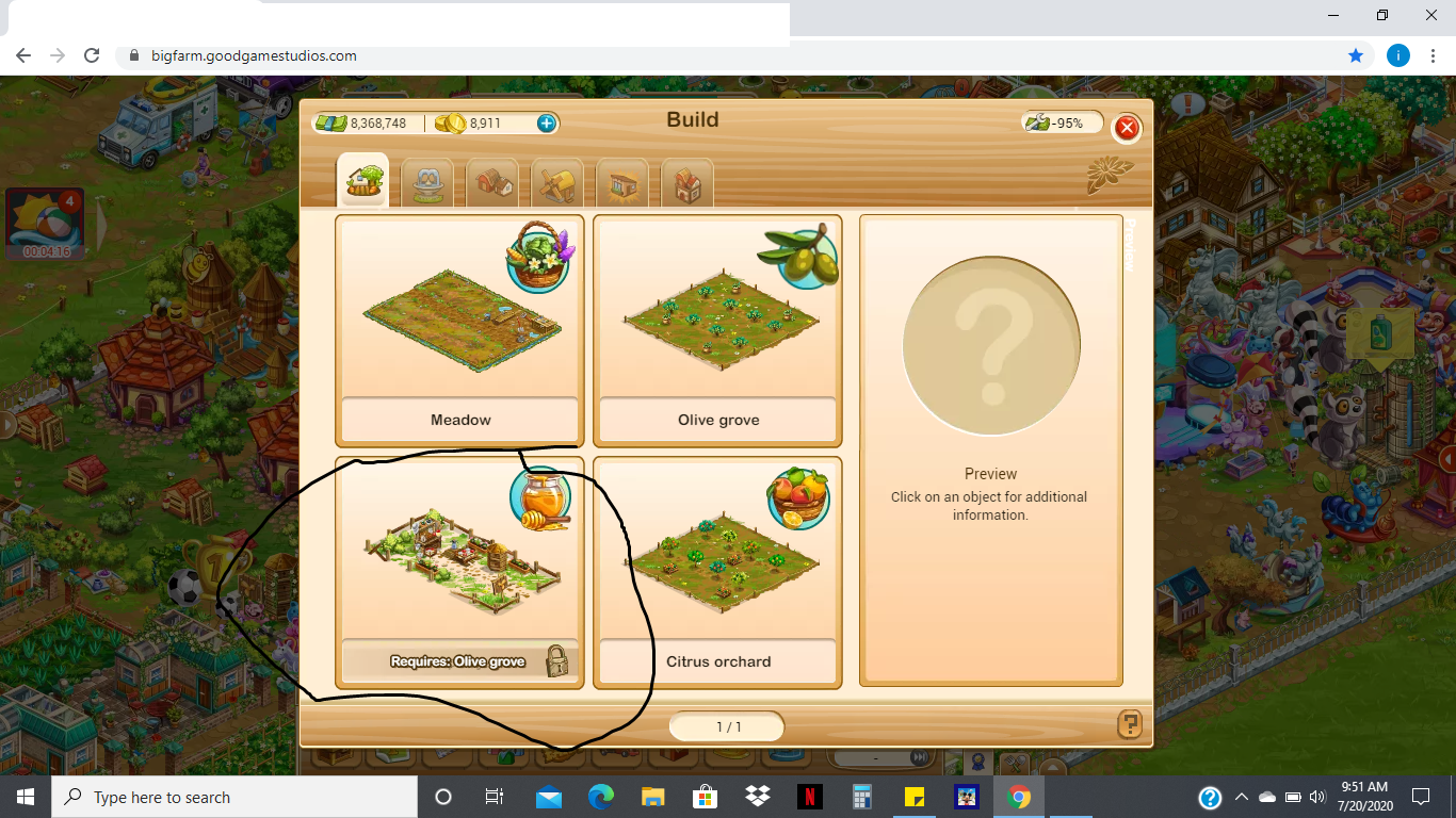 Build the olive grove that we know you don't want. Next, build your apiary or apiaries and then delete the unwanted olive grove.