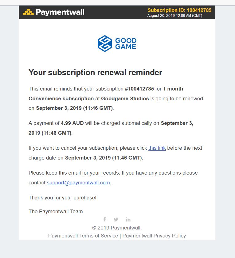 Please someone explain @WascallyWabbit @RowdyRac SCAM?? From what I have heard about paymentwall probably yes!! Are our suspicions correct that only reason GGS allows paymentwall is it also owns it. Why are our renewal reminders coming from Paymentwall a organisation with poor reputation? This email is nearly enough for me to be worried enough to cancel subs