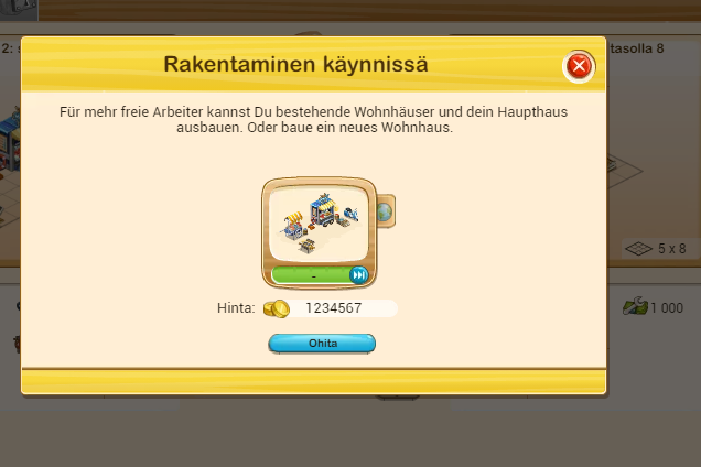 • Same problem here. Trying to upgrade a Oktoberfest building. hoped it would reset after I logged out YESTERDAY but no ... It wants me to skip for 1234567 gold