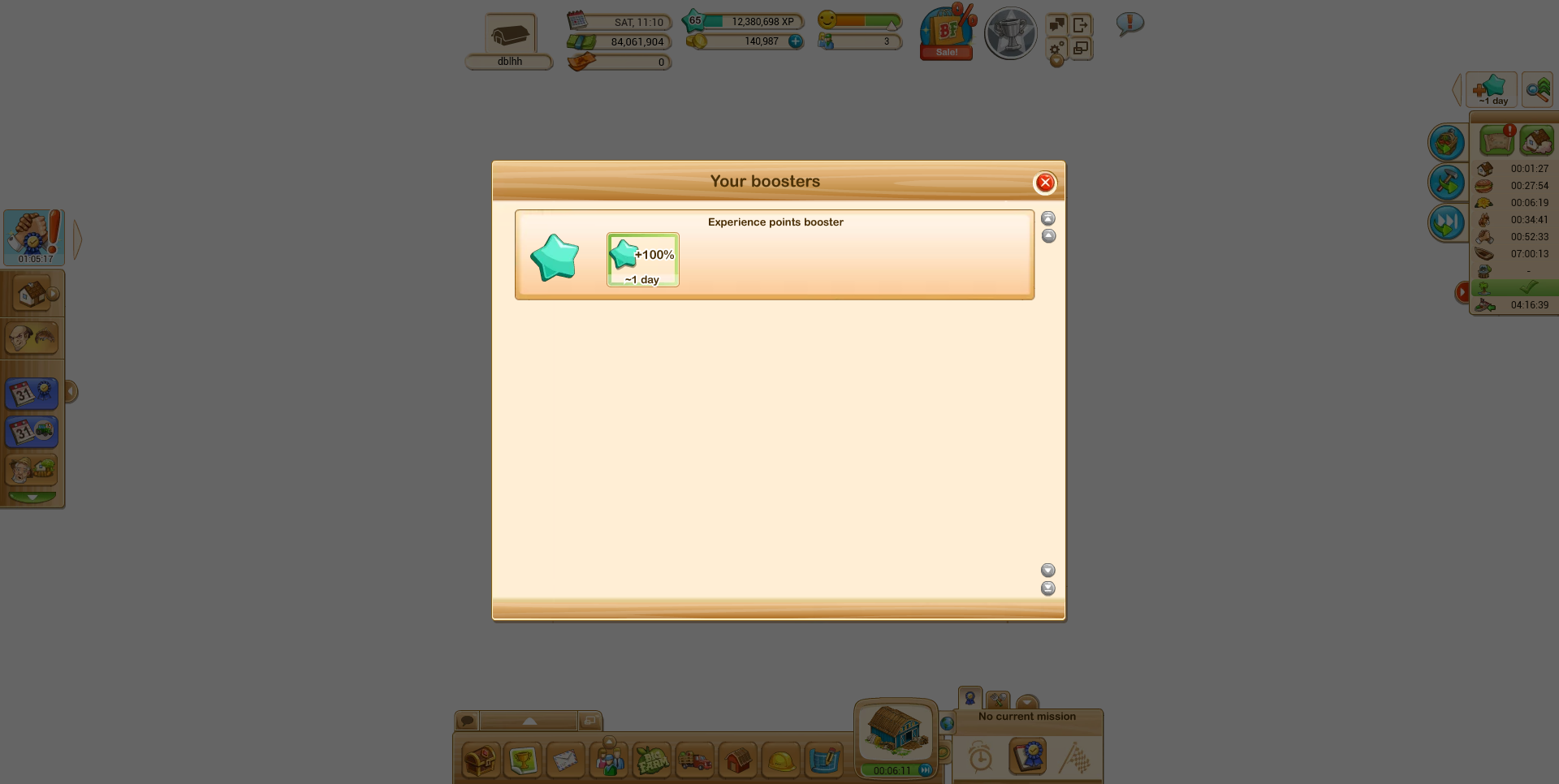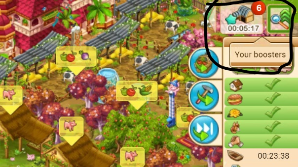 Trouble is, that's no good for the XP booster. You need to know how many HOURS are left so you can make appropriate plans. If you only have 14 hours left on your booster, you don't want to start a 15-hour production of fertilizer in your silo and miss the booster completely. If you're in your last couple of hours of booster, you switch to shorter crops to take the most advantage of the booster time you have left.