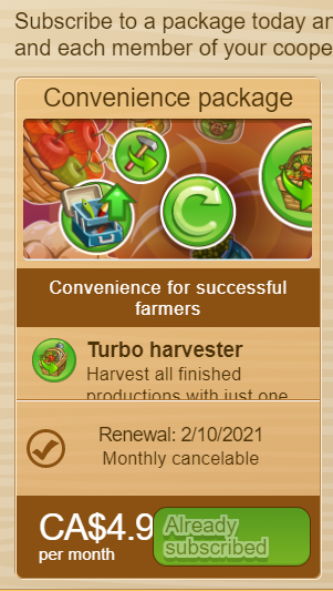 On the other farms the buttons are there for everyone whether you have a Convenience Package or not. It's just that it costs gold if you don't have the package.