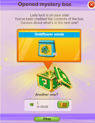 @ChickadeeQuilter I am still looking for an answer to the question I posed to you a few days ago. Your post states greenhouse seeds can be found in mystery boxes. What type of mystery boxes have greenhouse seeds as a reward? And if there really are any, were the greenhouse seeds recently added to them?
