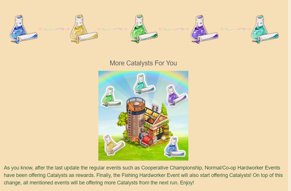 I want to know whether GGS has plans to change the lab OR NOT. If NOT, how are they going to make sure that we can earn enough cats to have a every day life on the farm ?? As it is, we can "winn" about 60-70 rare catalysts pr/invent . However it takes around 350 cats to just produce 150 premium fert.